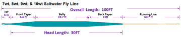 Moonlit Fly Fishing WF Saltwater Fly Line Ocean Blue/Sand