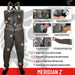 The MERIDIAN Z is the top of the line breathable zippered wader from Paramount. Designed with the best component and fabrics available. Featuring 6-ply full wrap lower legs, which eliminate the inseam allowing for a single seam crotch. This leg design cuts down on seam abrasion and chafe. Coupled with dual zippered fly box chest pockets, fleece lined handwarming pockets, and 2 rear zip storage pockets. The Ti-Zip MasterSeal 10 a is 100% waterproof full front zip for easier on and off and added venting. Designed to be worn with wading boots, the neoprene booties are double sealed and covered by 6-ply gravel guards. Available in SM - 2X.