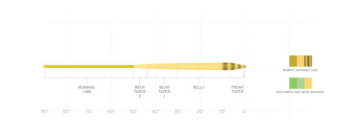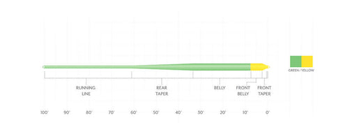Designed with line control in mind, its extended rear taper allows you to cast a mile, mend with authority, and turn over nearly any rig imaginable—from dredging double nymphs to larger dry-dropper concoctions. Steelhead, salmon, and trout won’t know what hit them. Long rear taper for extended line control and long-distance casting Ideal for roll casting and long-distance mending Overweighted to assist in turning over heavy rigs Use one size heavy for switch rods For use in moderate and cold climates Braided multifilament core ITEM NUMBER LINE WEIGHT HEAD LENGTH TOTAL LENGTH GRAIN WEIGHT* 123815 WF-5-F 60.0’ / 18,3m 100.0’ / 30,5m 175gr / 11,3g 123822 WF-6-F 60.0’ / 18,3m 100.0’ / 30,5m 200gr / 12,8g 123839 WF-7-F 61.0’ / 18,6m 100.0’ / 30,5m 225gr / 14,5g 123846 WF-8-F 62.0’ / 18,9m 100.0’ / 30,5m 260gr / 16,8g 123853 WF-9-F 63.0’ / 19,2m 100.0’ / 30,5m 305gr / 19,8g