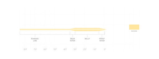 This general purpose floating fly line loads quickly, turns over large dries, nymph rigs, and streamers with ease, and features a mid-length head perfect for nearly all freshwater applications. Excellent general-purpose line Half-size heavy and more powerful than the Trout taper Better with larger, heavier flies Supple and easy to use Versatile mid-length head Braided multifilament core LINE WEIGHT HEAD LENGTH TOTAL LENGTH GRAIN WEIGHT* WF-3-F 32.0’ / 9,8m 85.0’ / 25,9m 110gr / 7,1g WF-4-F 36.0’ / 11,0m 85.0’ / 25,9m 130gr / 8,4g WF-5-F 36.0’ / 11,0m 85.0’ / 25,9m 150gr / 9,7g WF-6-F 36.0’ / 11,0m 85.0’ / 25,9m 175gr / 11,3g WF-7-F 40.0’ / 12,2m 85.0’ / 25,9m 200gr / 13,0g WF-8-F 40.0’ / 12,2m 85.0’ / 25,9m 225gr / 14,6g