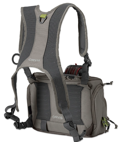 100% recycled ECO CORDURA 25 liters of capacity and innovative new features Streamlined design offers top and side-entry access Integrated net storage stores the net handle securely Internal zippered drop pocket and removable divider External water bottle/rod tube holder with deployable extension Shoulder strap docking stations and fly patch Compatible with Chest Pack (25FS) and Chest/Hip Pack (25FT) Padded front pocket accommodates hydration bladder or laptop Tuck-away hip straps