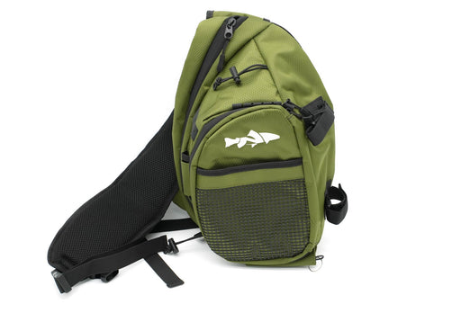 This is a great medium-large sized fishing sling pack for fly fishing with a lot of great features that make it very convenient. Of course it is designed to carry all your regular gear but it also can carry a fly rod while you hike, and big enough to carry a lunch with your gear to make a great day of fishing even better. Water-Resistant MaterialWith the ripstop honeycomb polyester with EVA lined inner walls this bag repels water nicely, only a little bit can slip in through the seams. If you take a quick fall in the water not much of any will get in the bag, I know from personal experience with this bag. Comfortable DesignVery Comfortable to wear with a breathable padded shoulder strap and back. Medium-Large 10 Liter Size Large enough to fit lots of gear but not overly bulky to where it gets in the way. The pack size is about 13" tall x 9.5" wide x 6" deep. Large Main CompartmentHas a Large Main Compartment for lots of fly boxes, gear or even a lunch. Also has a divider and several pockets to organize gear. Front PacketsMedium sized shelf compartment pocket at the front with a removable fly patch. Also has an outer rubberized mesh pocket for quick storage of an item or two. Long Handle Net Sleeve Has a sleeve to carry a long handle net on the backside between the padding. Makes it easy to carry your long handle net without it dangling down to your knees. Net Clip LoopAlso has a plastic loop at the top of the sling to clip on a net to carry if that is the preferred option. Rod Carry Straps Velcro straps on the side to carry a rod while hiking or to bring a spare along. These straps are removable and have slots for you to add your own style of straps that you prefer more than velcro. Water Bottle Holder Has a water bottle pocket at the bottom of the sling pack with an adjustable strap to hook the top of your water bottle to keep it secure. Built-In Lanyard Has a built-in lanyard with a key ring at the bottom side of the bag to attach nippers or other often used accessories. Lots Of Connection FlapsThis bag has lots of flaps on the bag to clip on streamside tools. Built-In Tippet Holder Loop There is an adjustable loop at the top of the bag for holding your tippet and line spools. This loop has been reinforced so it cannot pull off. Front PocketThere is a small phone sized pocket on the front side of the shoulder strap for carrying small tools or have your phone/camera ready for a photo. This will fit iPhones up to the 13 Pro or similar. Reinforced Strap ConnectionsWe have used many bags where the side strap pulls out of the seam where it connects to the bag. We reinforced this area where the strap connects to the bag so it will not easily wear out and pull free.