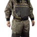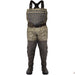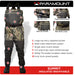 The Summit Insulated Breathable Camo Wader will be the best and most reliable hunting wader on the water. 100% waterproof breathable and built to last with puncture resistant fabric and durable seam design. This insulated breathable bootfoot wader features a 1600g Thinsulate insulated rubber boot. Additionally the 120g zip in/out insulated liner is removable making this camo wader ideal for early or late season. Coupled with reinforced full wrap 6-ply puncture resistant nylon legs. This full wrap leg allows for a single seam crotch and no inseam. Which cuts down on seam abrasion. The Molle attachment system featured on the chest pocket is coupled with 6 total chest pockets. Featuring fleece lined pass through, pass through side zip pockets, flip-out device pocket, and top entry zip pocket. With ample storage and attachment points you'll have room for everything you need in the blind, boat, or timber. Lastly, this camo chest wader features 2" elastic suspenders with D-ring attachment points. Lastly, the 2" wading belt features 6 shell loops.